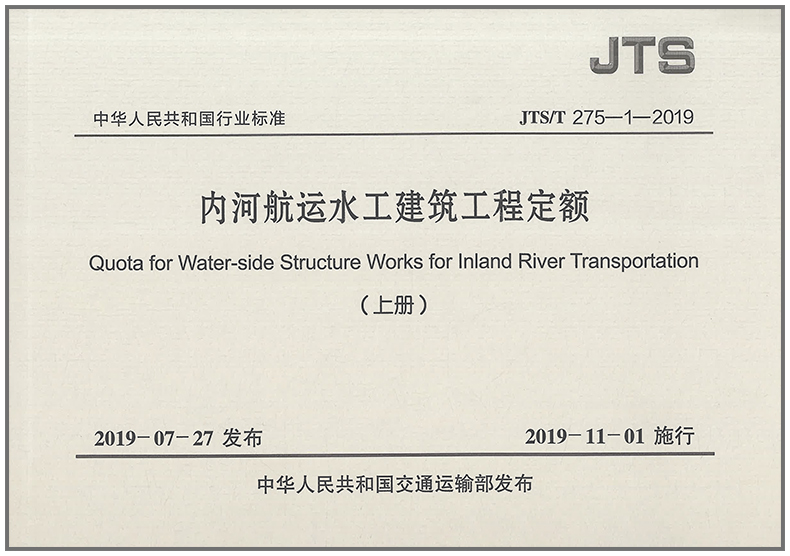 JTS T 275-1-2019 内河航运水工建筑工程定额 下载: