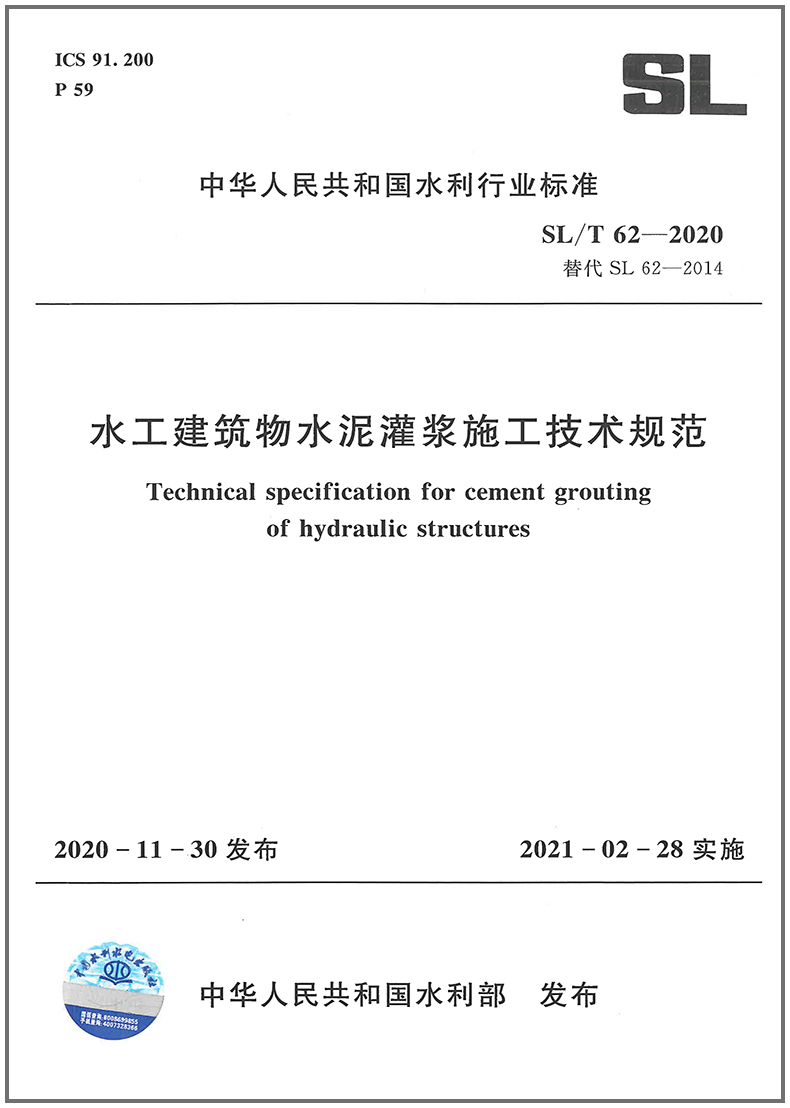 SLT 62-2020 水工建筑物水泥灌浆施工技术规范(水利) 下载(访问密码: 7955):